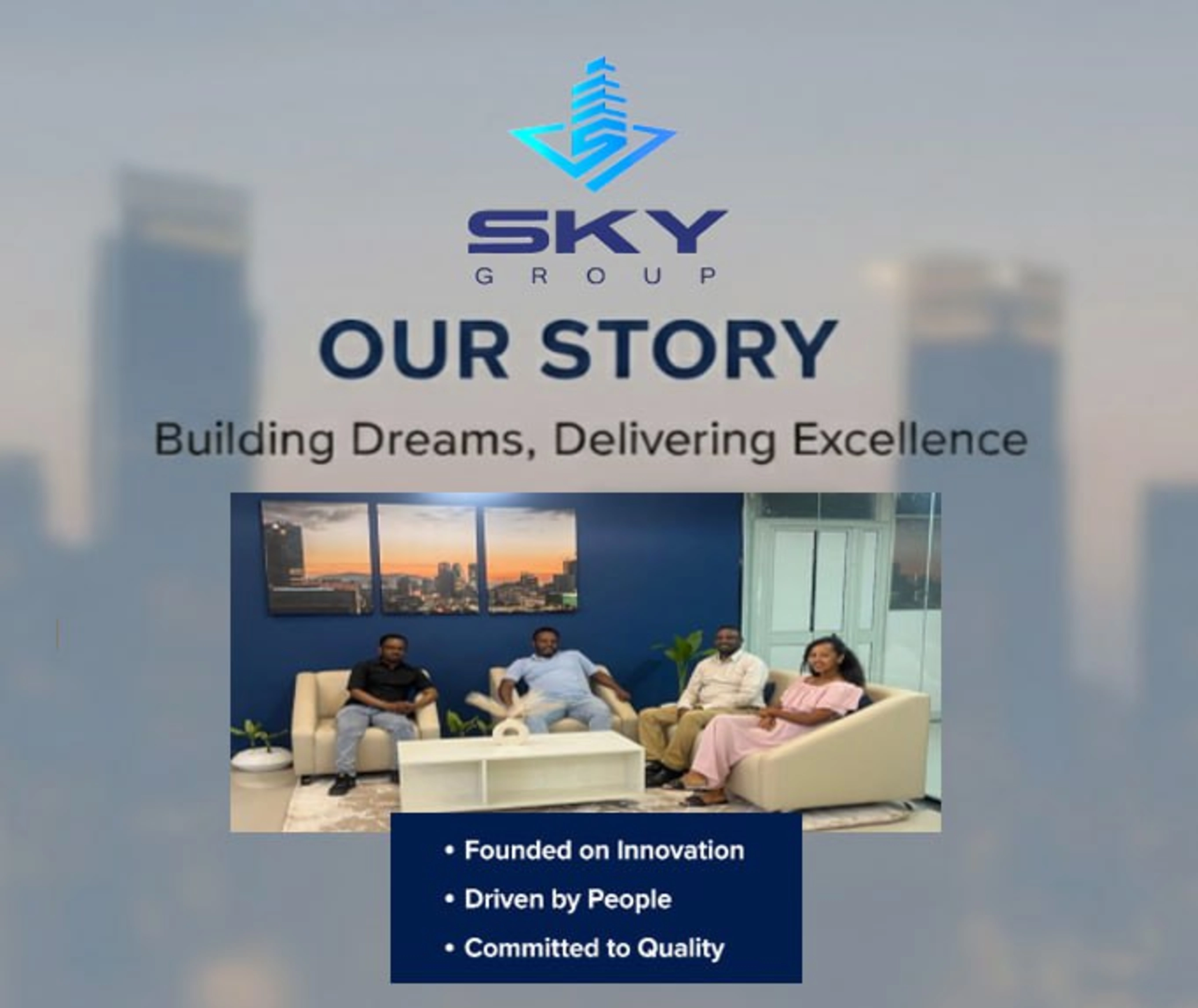 Established in 2023 and headquartered in Ayat (Lemi Kura Sub-city, Woreda 02, House No. 312, Yahweh-Nissi Building), Addis Ababa, Ethiopia, with a branch in Hargeisa, Somaliland, Sky Group was founded by four seasoned professionals with 10 to 20 years of experience in the Ethiopian construction industry.